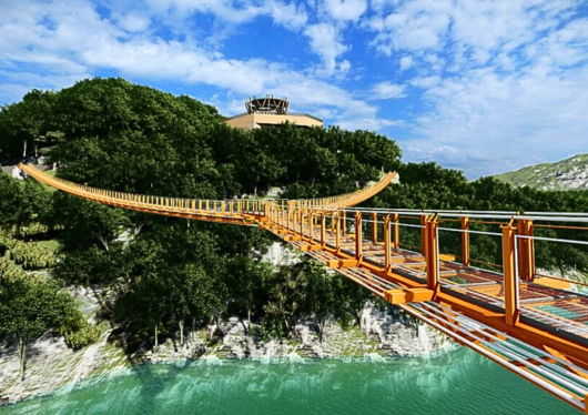 2024年全新亮相的漢灘江Y字形吊橋,以410公尺的超長跨度橫越漢灘江峽谷,獨特的 Y 型橋身彷彿從雲端直落大地!走在橋上,每一步都像踩在「天空之鏡」上,腳下正是被聯合國教科文組織認證的絕美峽谷——碧水蜿蜒、岩壁壯麗,瀑布在遠方若隱若現。準備好挑戰心跳加速的極限體驗了嗎?