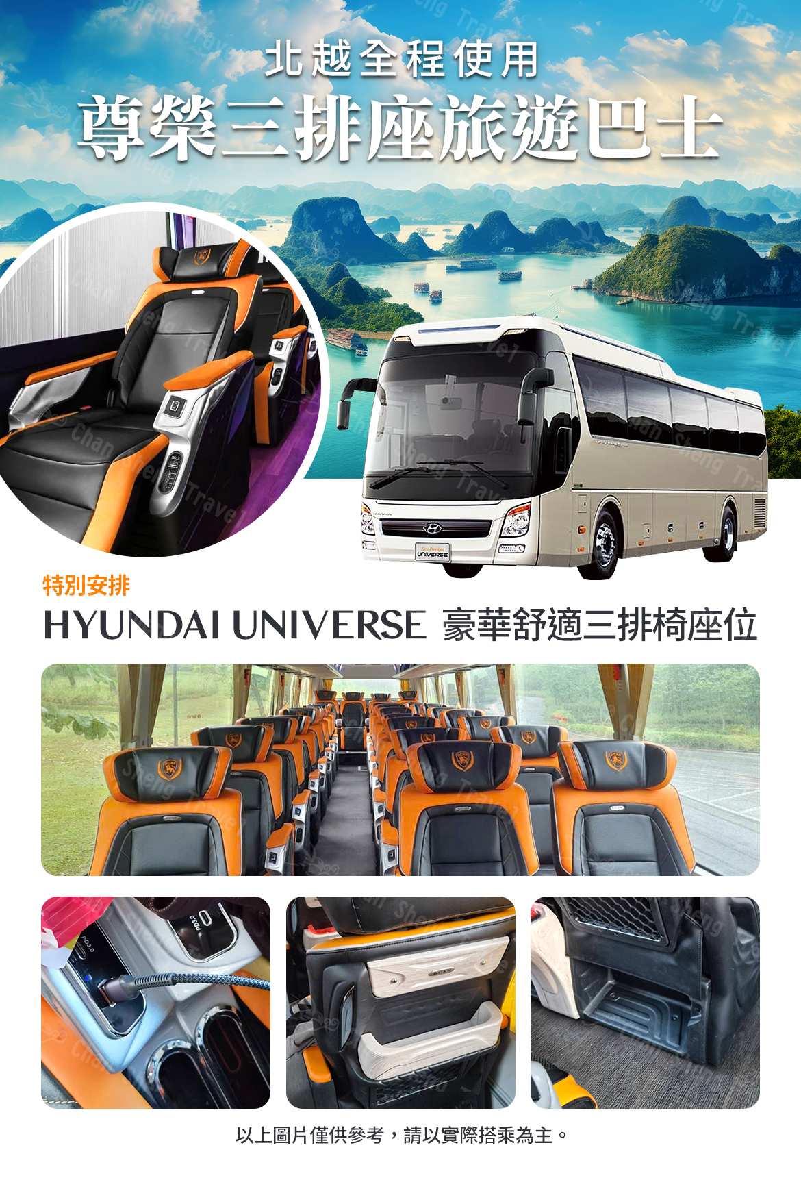 ※本行程全程使用尊榮「三排座椅」旅遊巴士