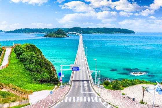 角島大橋位於山口縣下關市,橫跨海士瀨戶,連接本州西北方的山口縣與美麗的角島。這裡是許多遊客到山口旅遊時必訪的景點,也曾是電影《四日間の奇蹟》、日劇《HERO特別編》、台劇《愛情白皮書》以及多部日本汽車廣告的取景地。角島大橋全長 1,780 公尺,於 2000 年開通,建橋時充分考量環境與生態保護,不僅嚴格控管橋體高度,也避開中途的旭島,改為繞島而行。當時是日本連接離島最長且免費的跨海大橋,是山口縣最具代表性的海景地標之一。