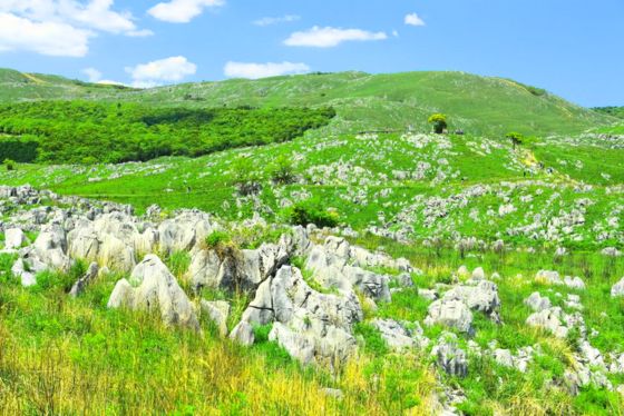 秋吉台以一望無際、成排分布的石灰岩地形聞名,壯闊景色令人驚嘆。約3億5千萬年前,這裡其實是一片汪洋大海。當時的秋吉台是南方海域的珊瑚礁,經漫長歲月堆積與變化,逐漸轉化為厚達500至1000公尺的石灰岩。隨著地殼運動,岩層露出地表,形成今日草原與白色岩石交織的壯麗景觀。石灰岩中仍可見太古海洋生物的化石,彷彿封存了遠古的海洋記憶。這片土地隨四季更迭展現不同色彩——秋的金黃、焚草後的黑、冬雪的白,以及春夏新綠。秋吉台以「黃、黑、白、綠」描繪出大自然最壯麗的四季詩篇。