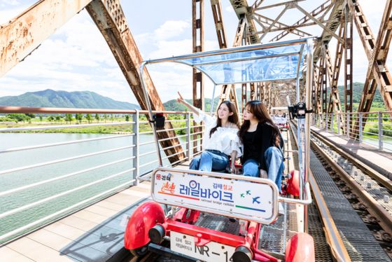 全程來回約3公里,是由廢棄鐵橋改建而成,全長約 3公里,路程平緩。旅客可以體驗微風輕拂,一邊欣賞洛東江沿岸美景的特別感受,尤其橫跨在洛東江上的舊鐵橋,亦使風景更添風味。是穿越鐵橋,能飽覽洛東江景色的休閒運動。不僅能感受踩著鐵路自行車行經復古鐵橋的特別體驗,還可與附近的紅酒洞窟一併遊覽,更添樂趣。