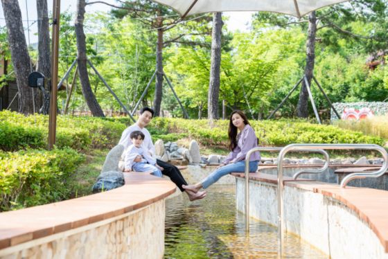 洛東江鐵路自行車附近還有一處浪漫景點——紅酒隧道,是情侶約會的熱門路線之一。這座紅酒洞窟原本是森林隧道改建而成,內部展示並銷售以金海當地特產「覆盆子」釀製的紅酒。洞窟中設有多個趣味拍照區,包括吉祥物「覆盆子少女」的打卡區、光影隧道以及3D立體畫作,不僅可以觀賞,也提供了與好友或情人留下美好回憶的絕佳場景。